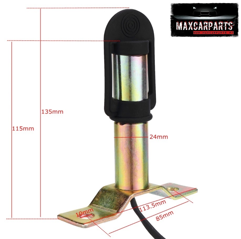 Suporte metálico com haste e capa preta, com medidas em vermelho e logo MAXCARPARTS.