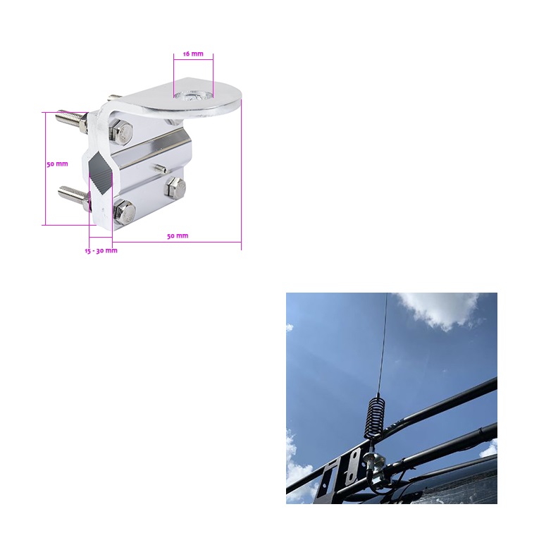 Feito de aço inoxidável, é ideal para antenas fixas DV ou PL nas quais a antena de rádio CB, VHF ou UHF é normalmente montada.