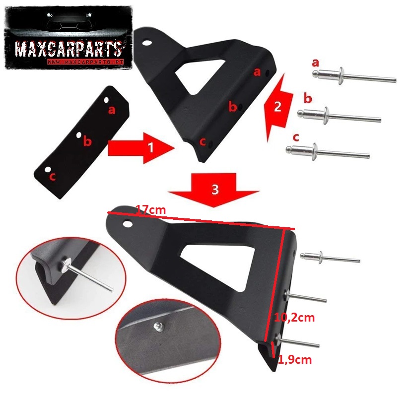 Os suportes são feitos de aço, sólido e resistente e com a superfície revestida e protegida, fixando assim a barra de leds.