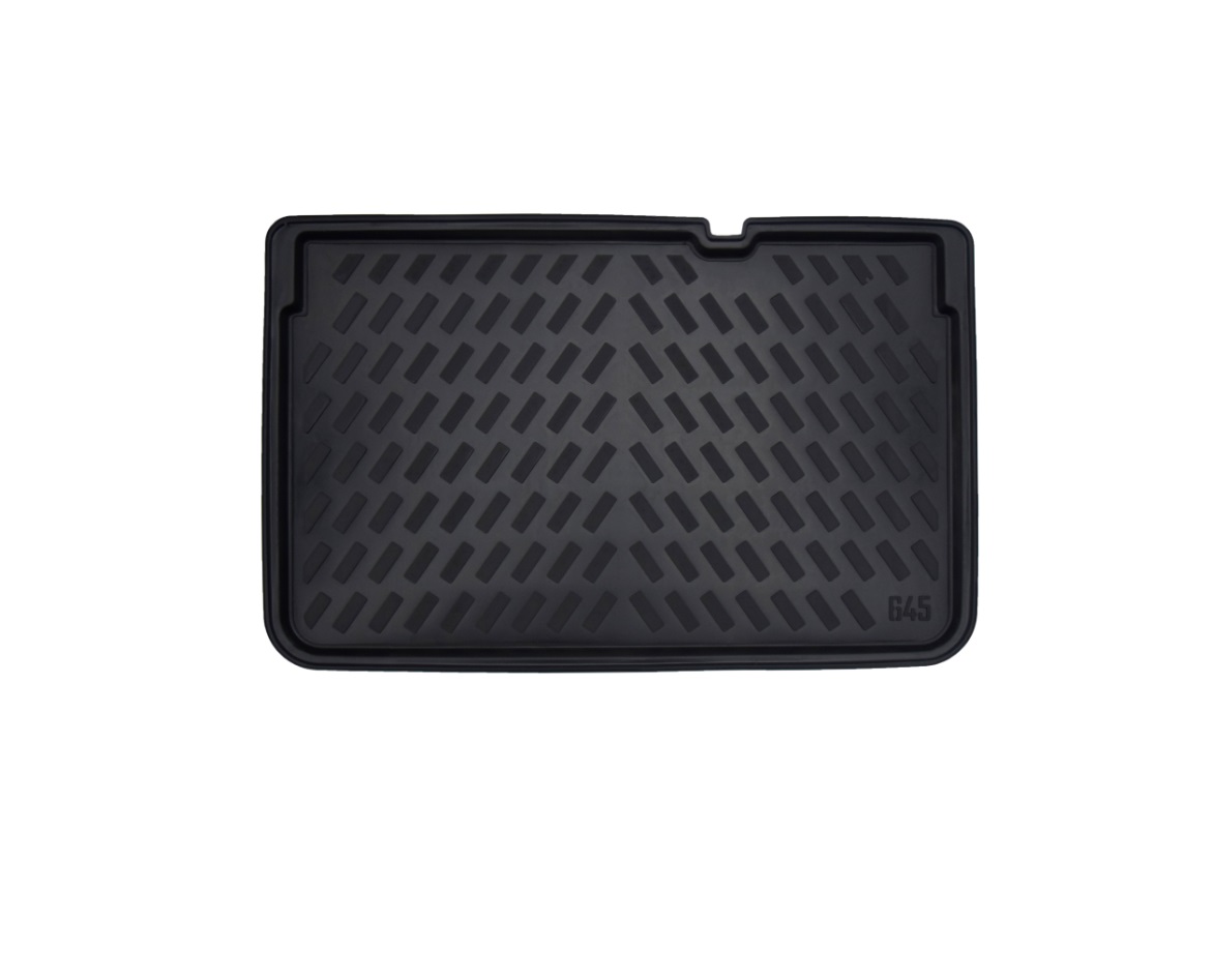 É extremamente durável e tem uma soleira bastante alta (tipo bacia), evitando que líquidos derramados e poeira se espalhem no carpete/fundo da mala do seu carro.