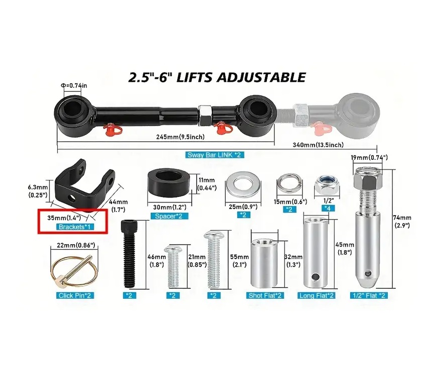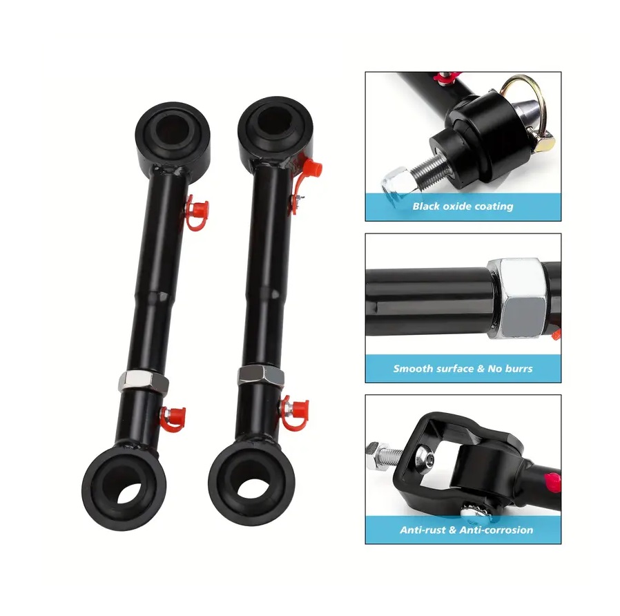 Kit de tirantes para barras estabilizadoras para Jeep, mais compridos, ajustáveis e com desconexão rápida.