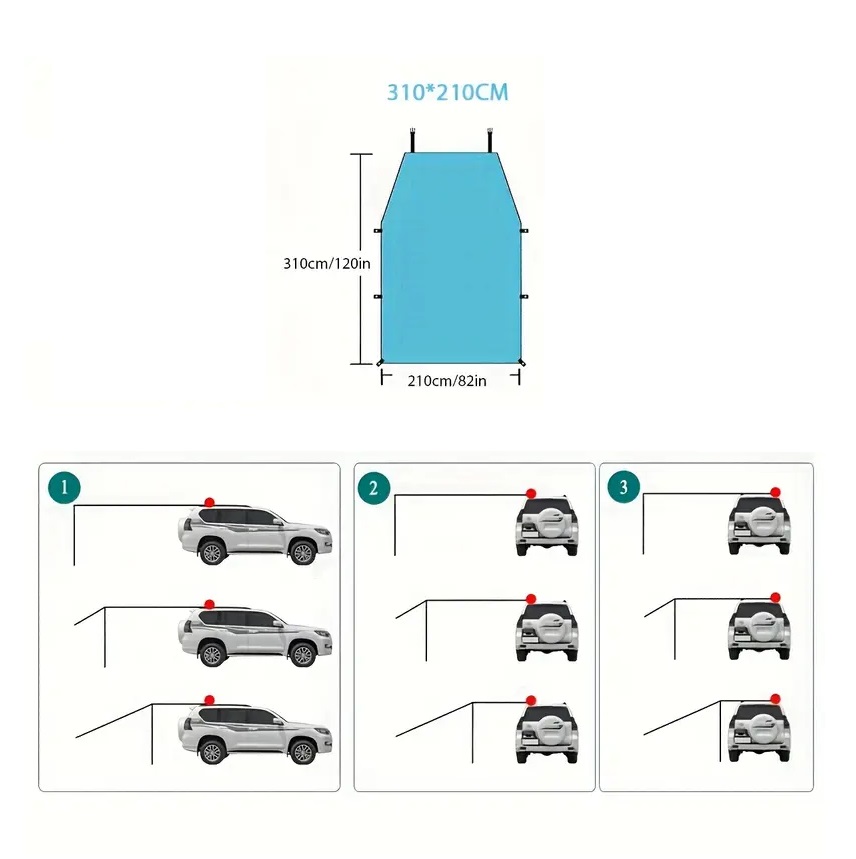 I-nclui também bolsa de transporte, espetos/pinos e cordas para instalação. Possibilidade de incluir 2x ventosas de tejadilho.