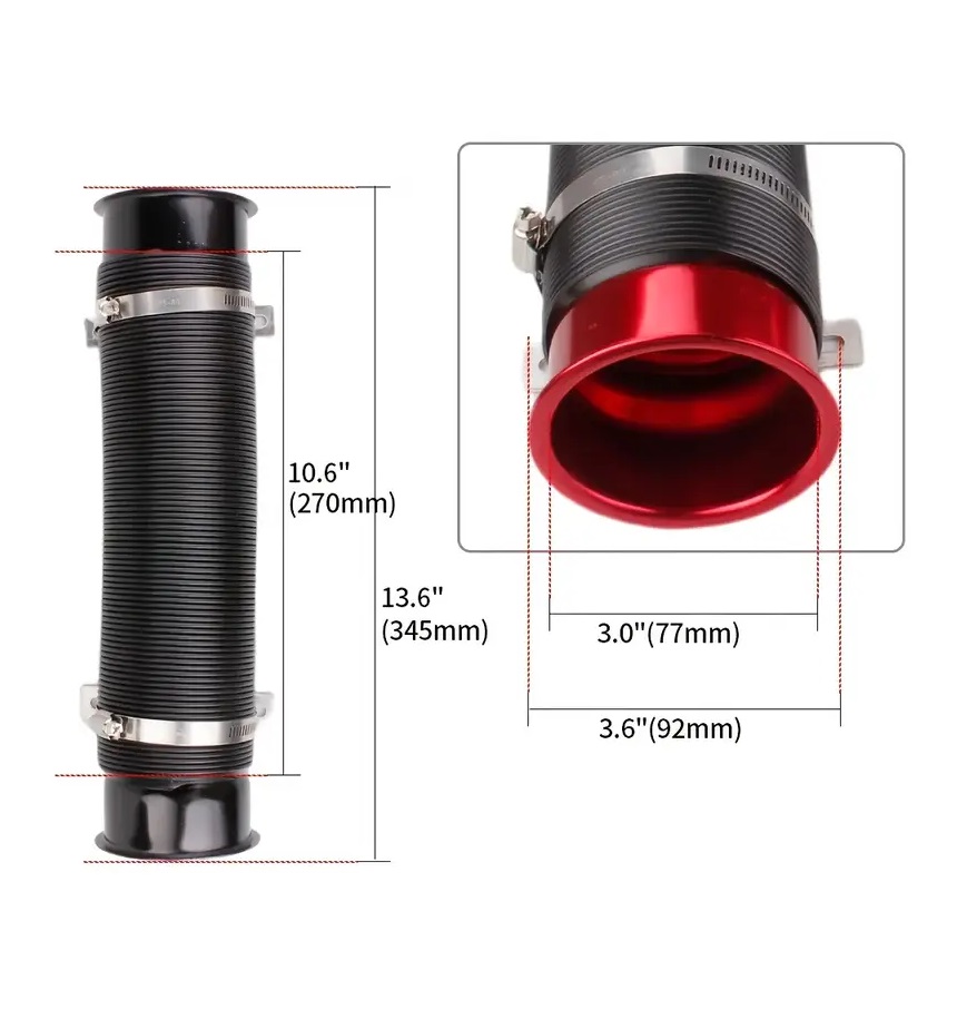 Tubagens de Admissão de Ar universal, tubo preto pronto a montar e normalmente necessário em adaptações de filtros cónicos entre outros.
