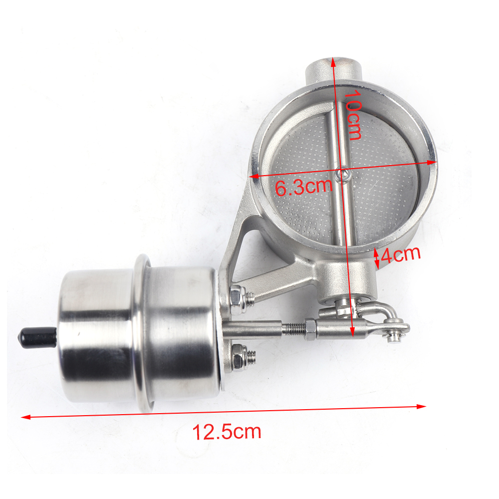 Válvula bypass de controlo por vácuo para os gases de escape, com 63 milímetros de diâmetro, permitem com um apertar de botão, a passagem de uma linha de escape com panelas para uma linha directa, passando de um trabalhar silencioso para um mais desportivo.