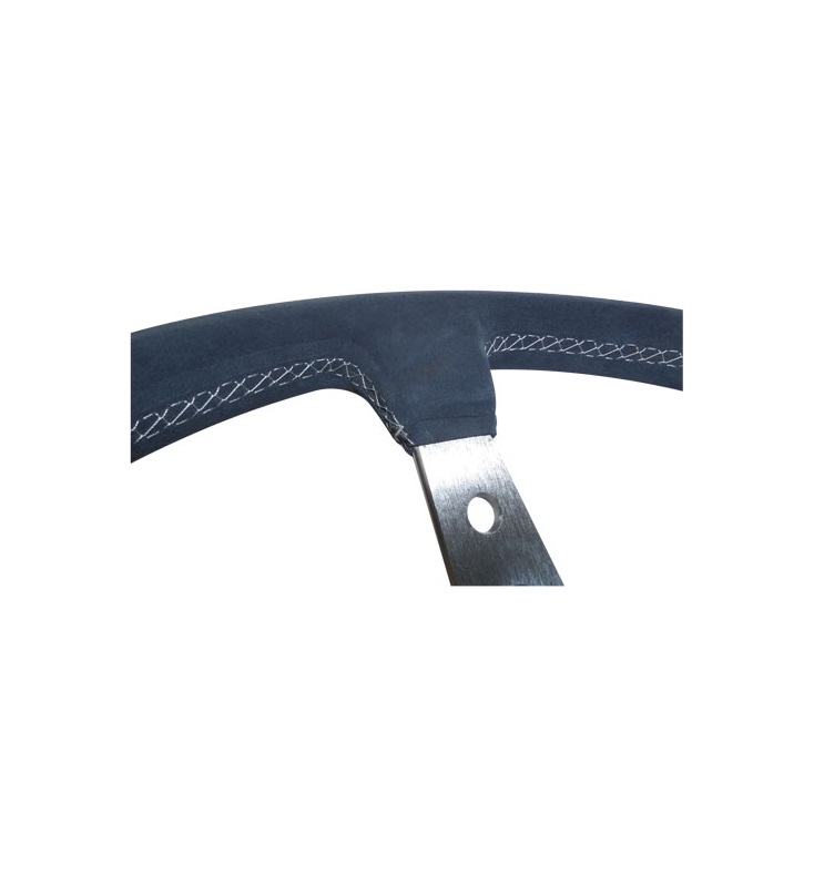 Volante de 350mm universal, feito em aluminio e em Alcântara/Camurça, costuras Brancas e risca Branca.